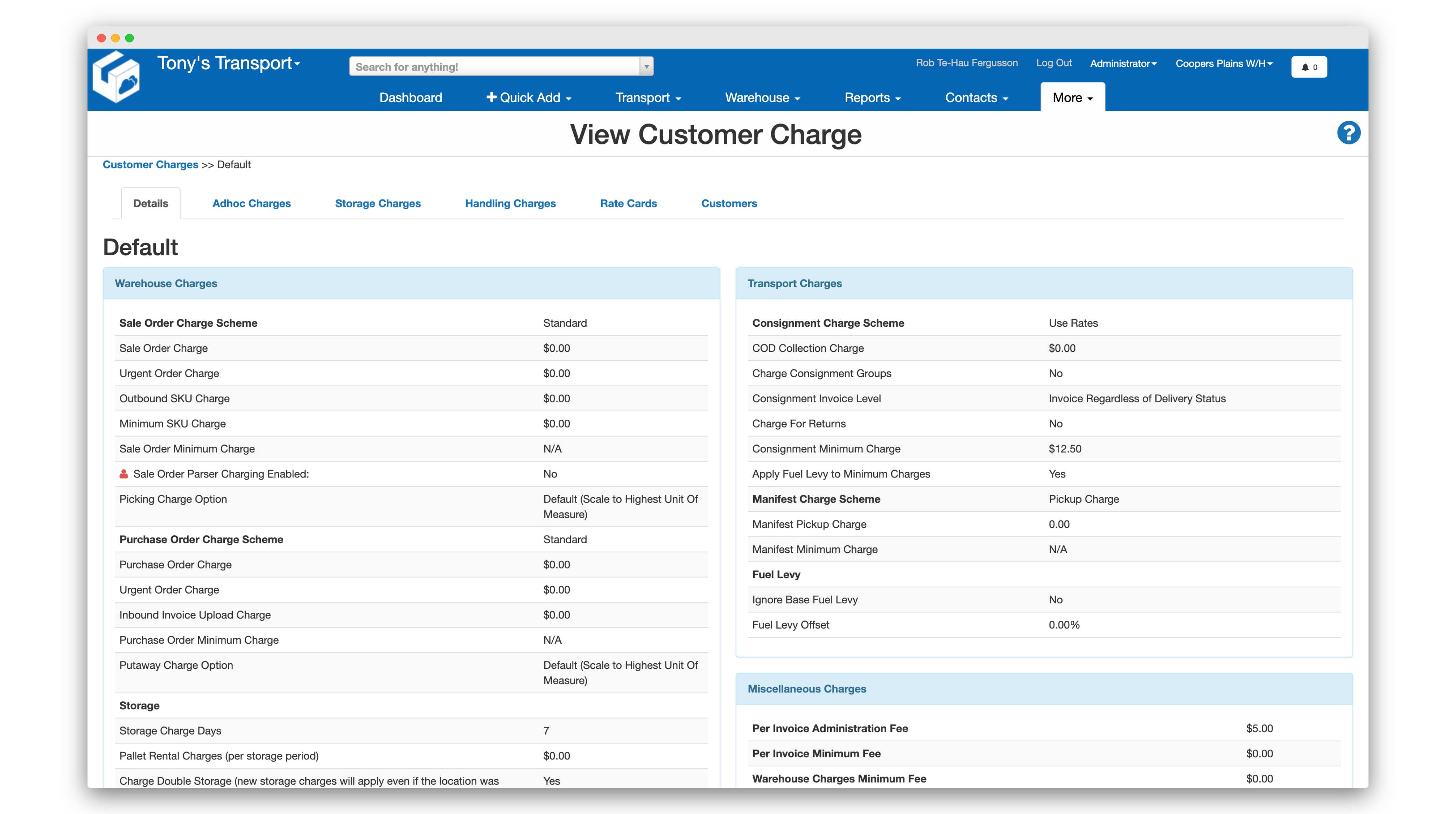Surcharges, minimums, discounts, day of the week and flat charges are all available. For example, if you have a surcharge applied on a Friday and a discount applied on a Monday, all of these can be entirely automated within the transport charging.