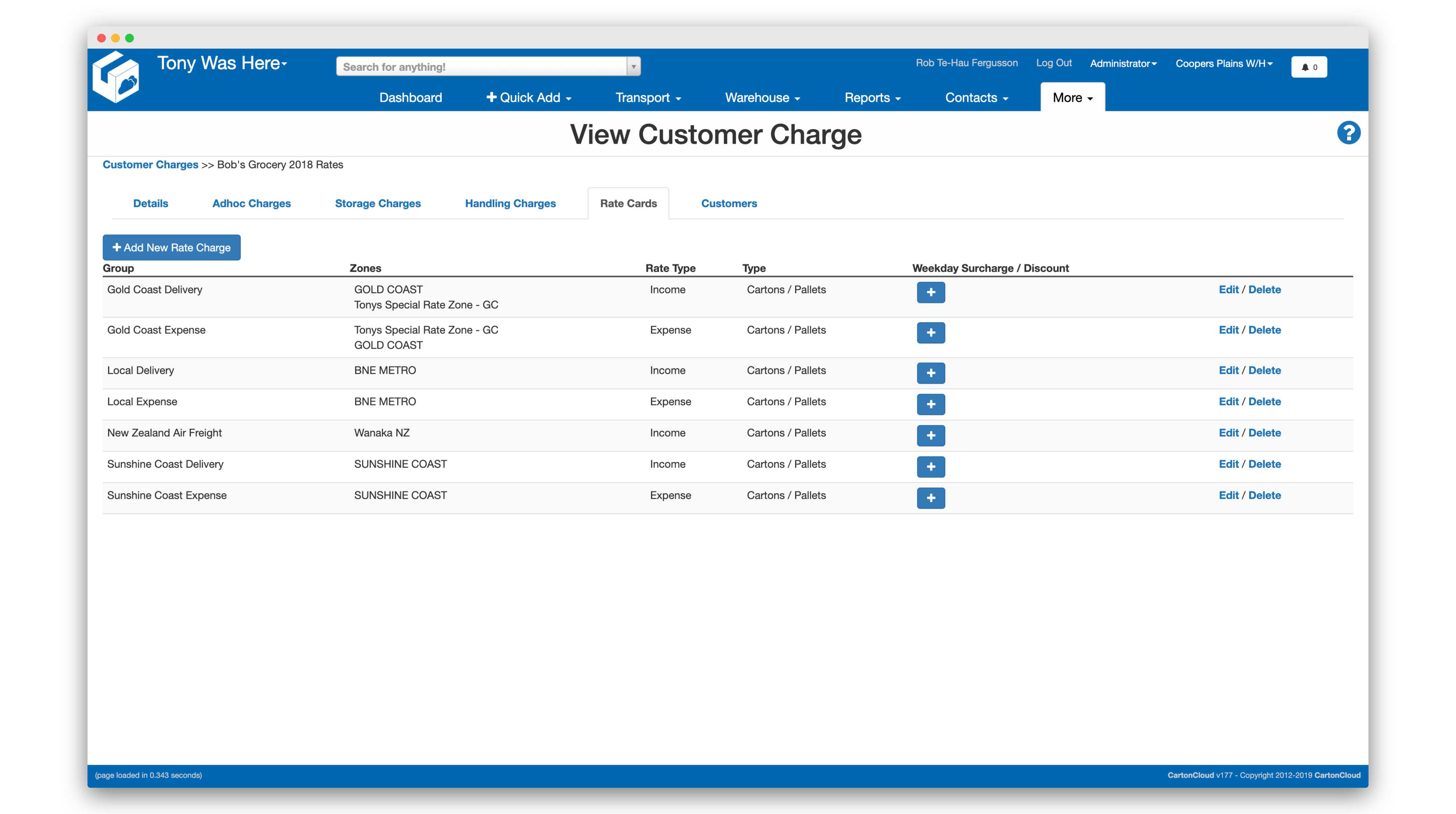 Rate cards are used within (3PL) Third Party Logistics companies to calculate charges for their clients. You'll typically have a bunch of different clients and each of those clients will have completely different ways in which they're charged for storage, pick and pack, delivery etc.