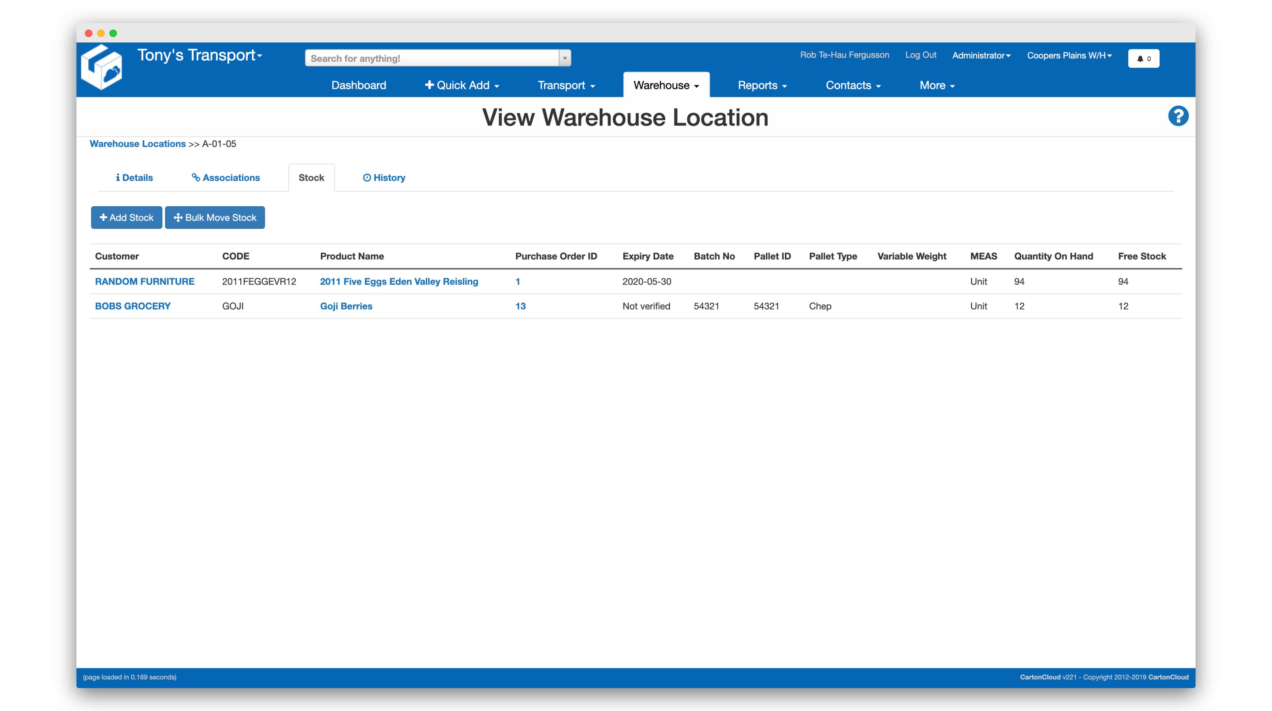 Rather than having to run around trying to find an empty location, you can just put them on the same pallet spot as an existing product and CartonCloud will handle the storage charges and the traceability of the stock completely automatically. It will warn you that where you're putting the stock is not an empty location, but it certainly won't prevent you because this is something that's common practice in the small to medium 3PL industry.